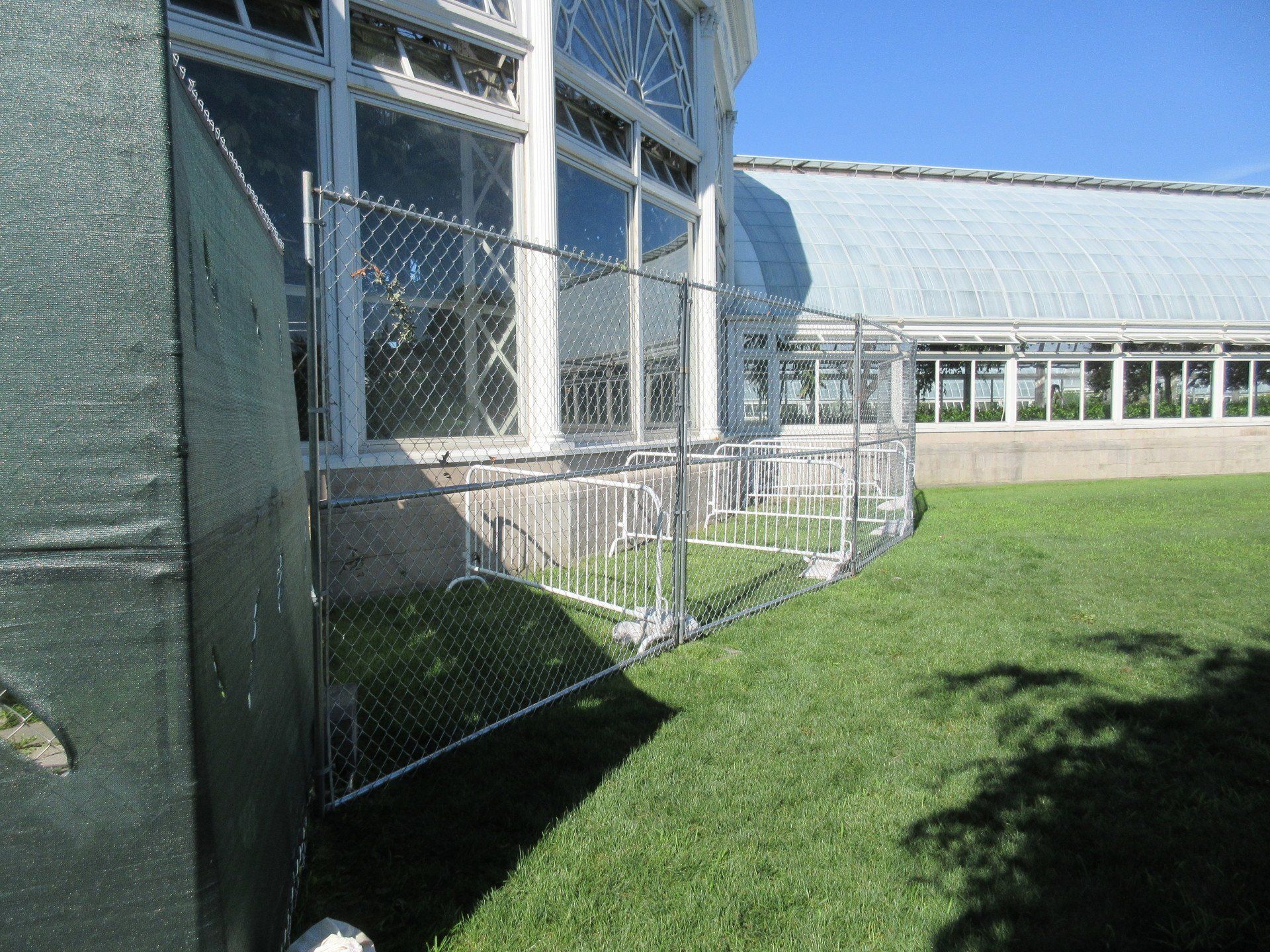 8’ x 10’ Chain Link Fence Panels can be put on movable stands with sandbags and screening can be added. Chain Link Fence
